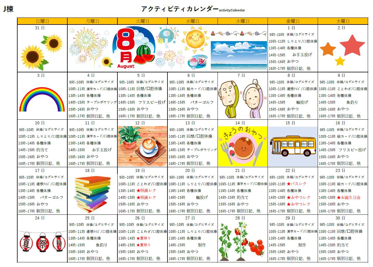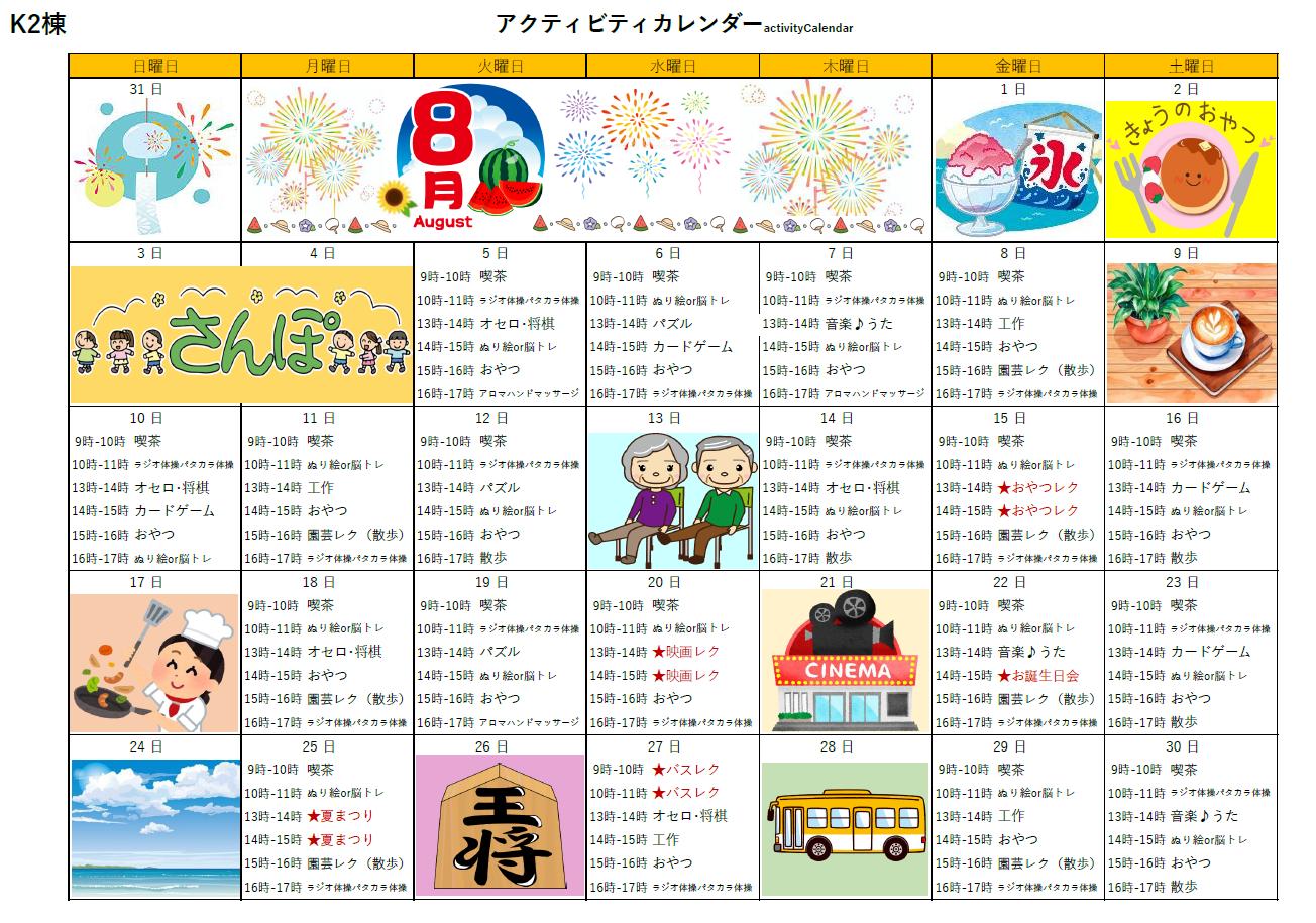 アクティビティーカレンダー掲載のお知らせ(2025年8月)【はーとふる東山】