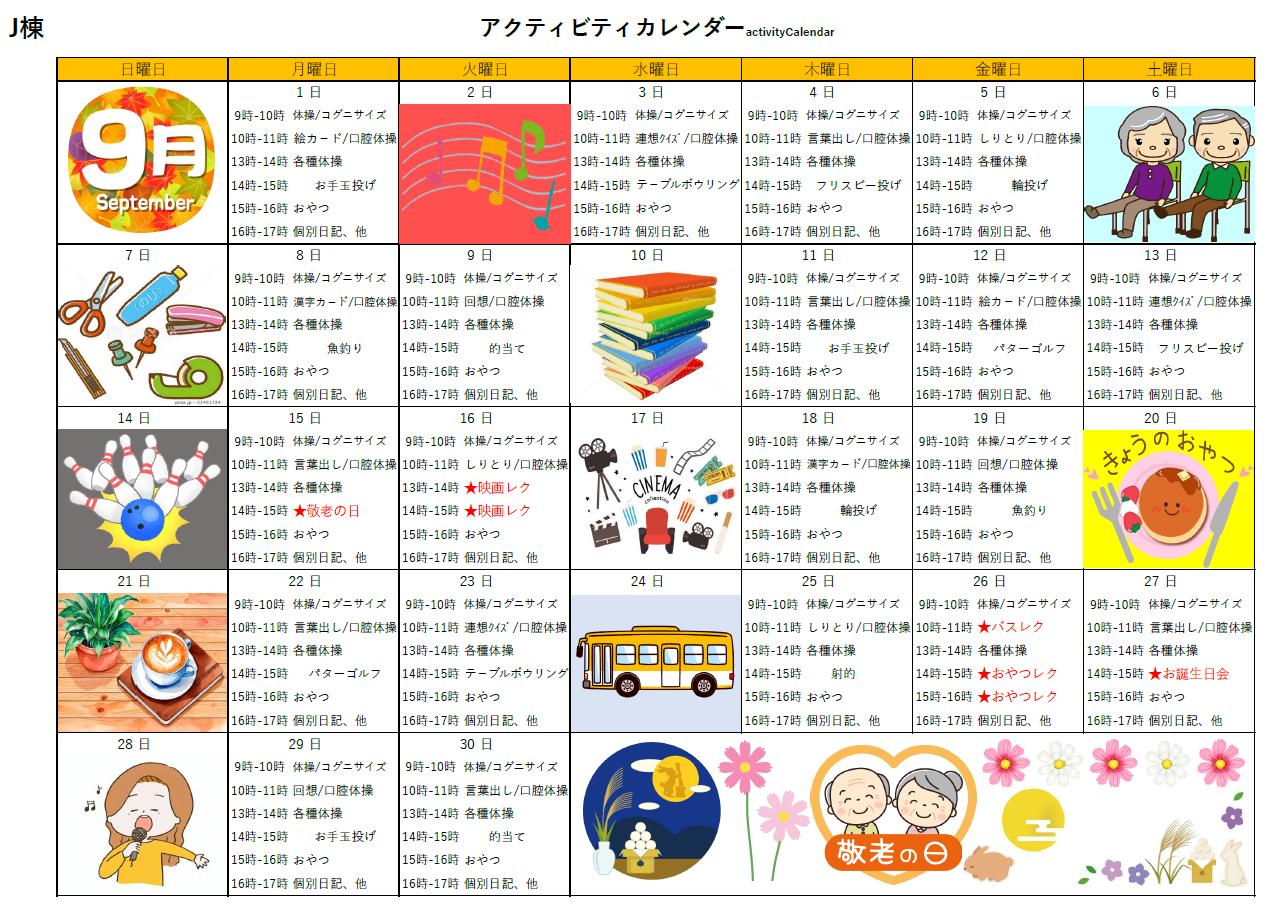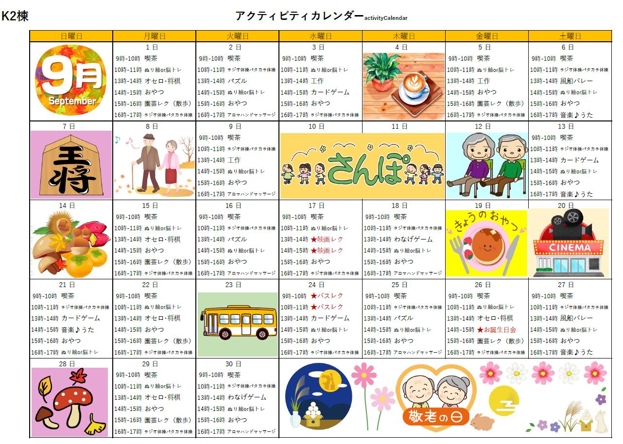 アクティビティーカレンダー掲載のお知らせ(2025年9月)【はーとふる東山】
