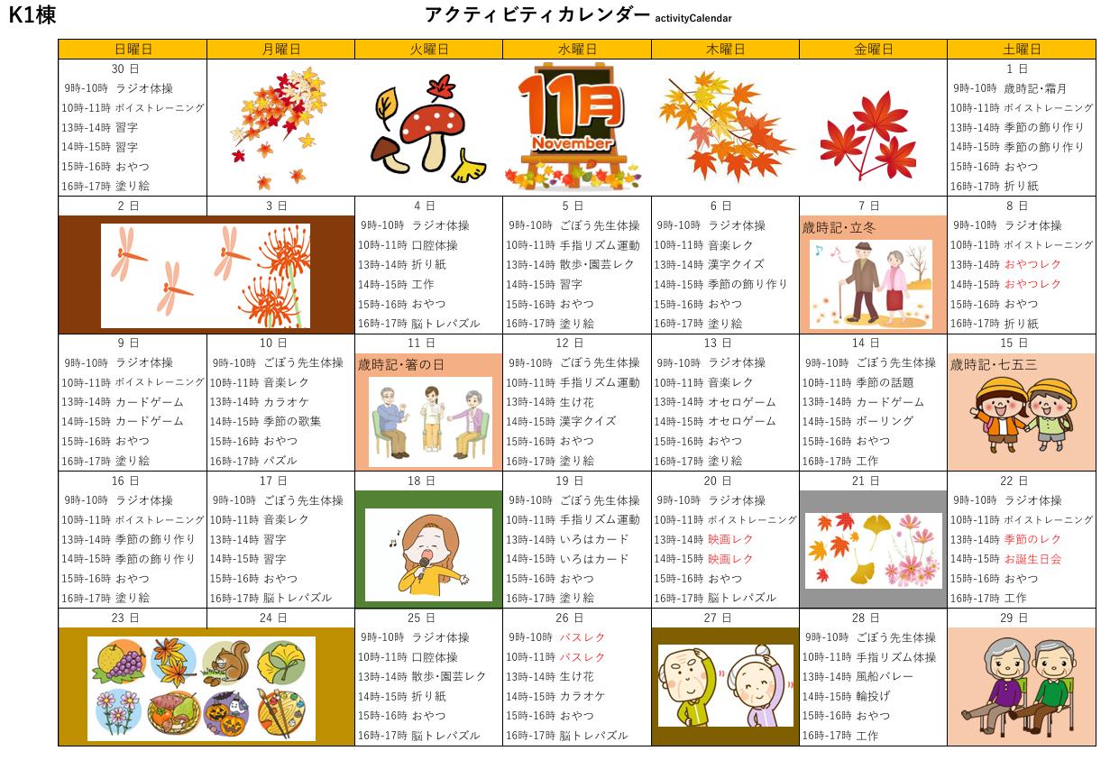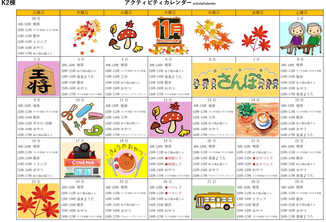 アクティビティーカレンダー掲載のお知らせ(2025年11月)【はーとふる東山】