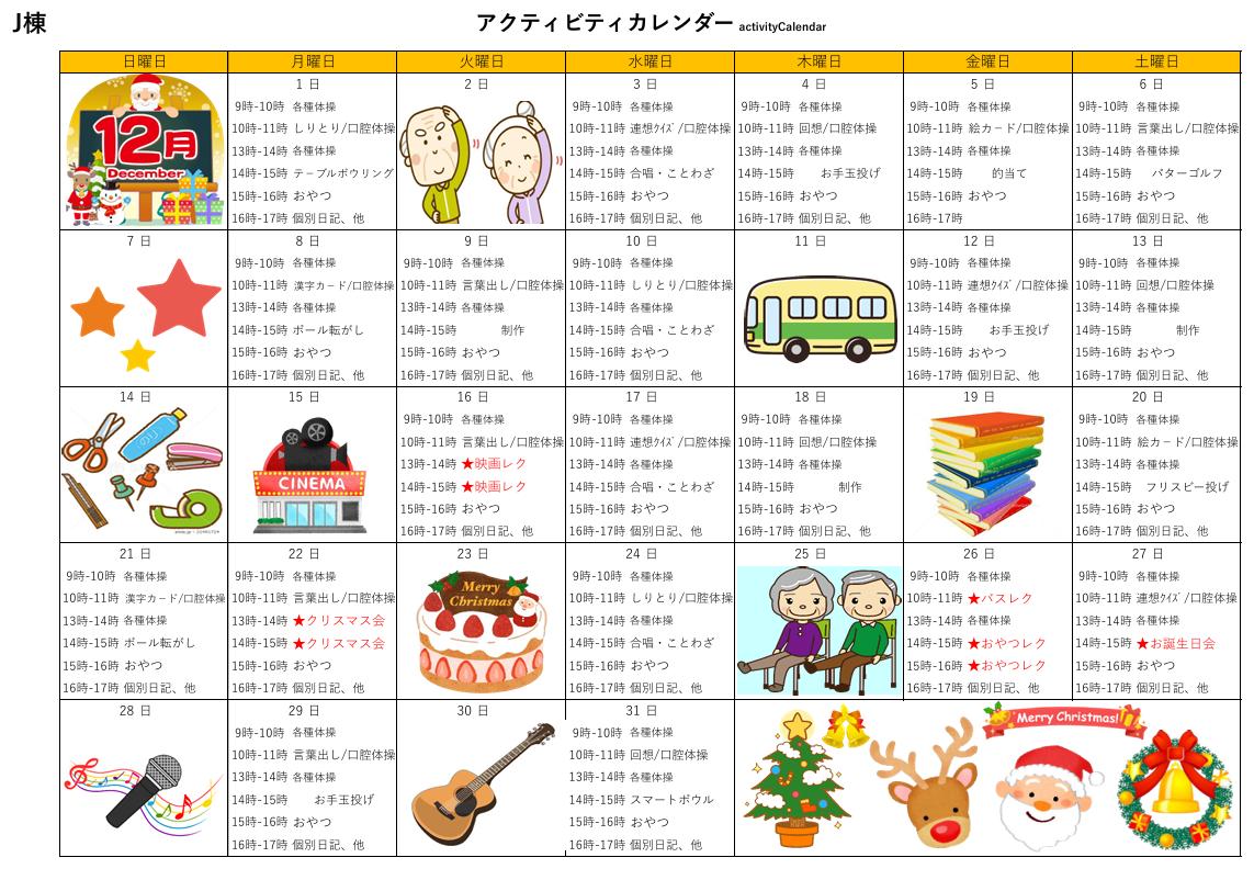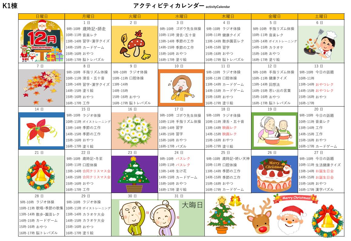 アクティビティーカレンダー掲載のお知らせ(2025年12月)【はーとふる東山】