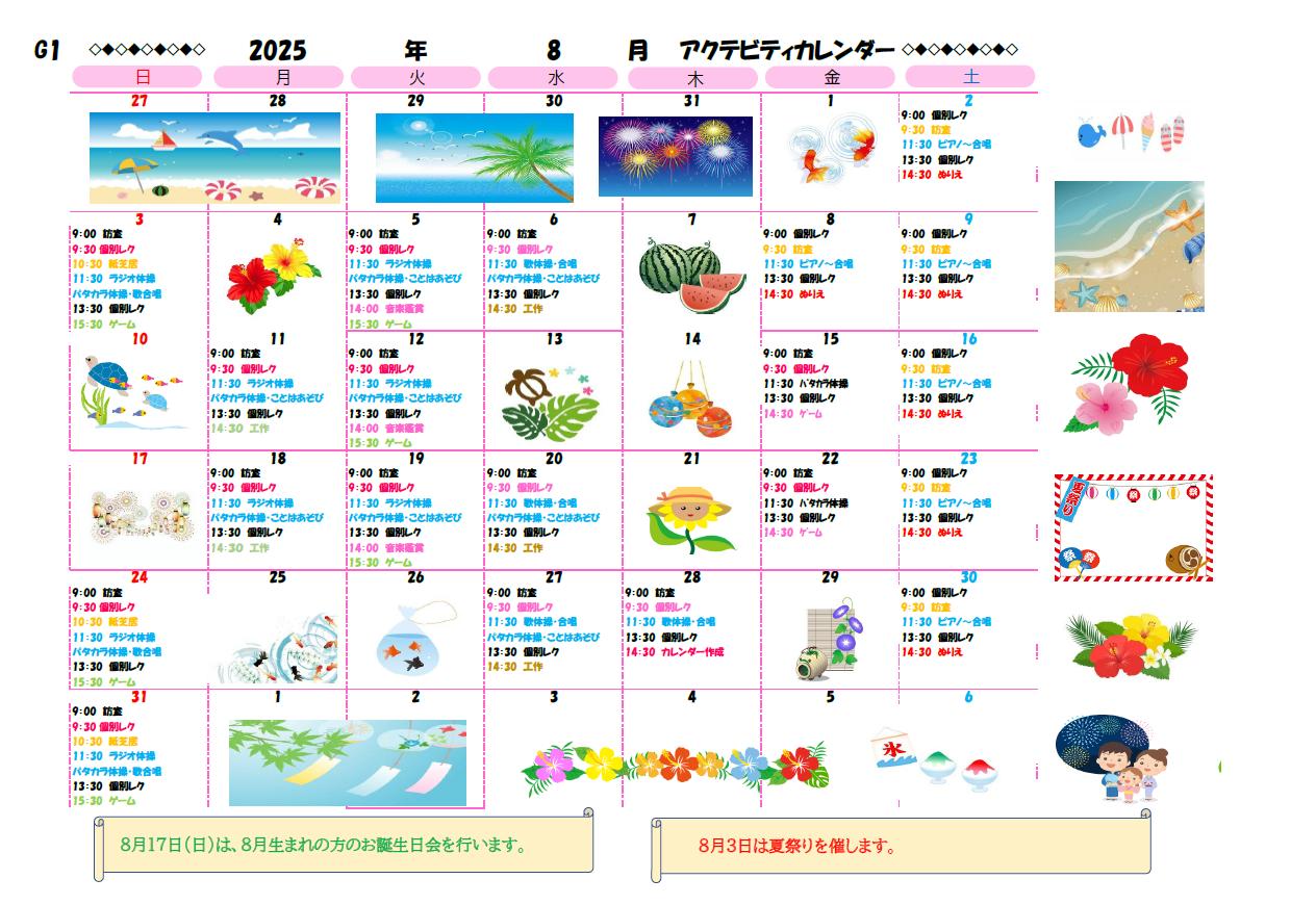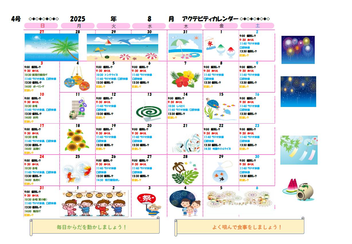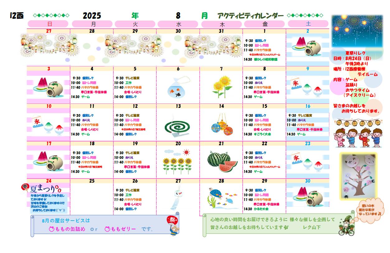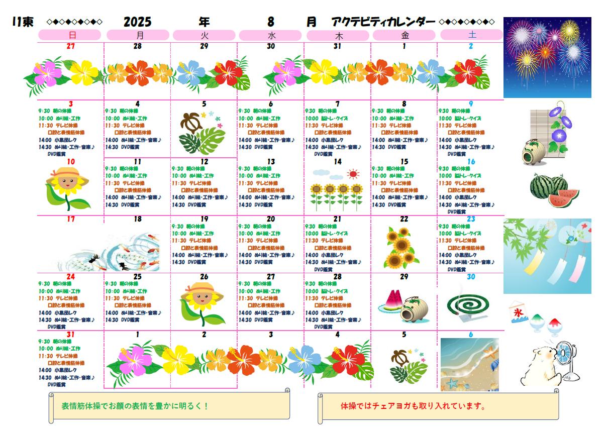 アクティビティーカレンダー掲載のお知らせ(2025年8月)【京都東山老年サナトリウム】