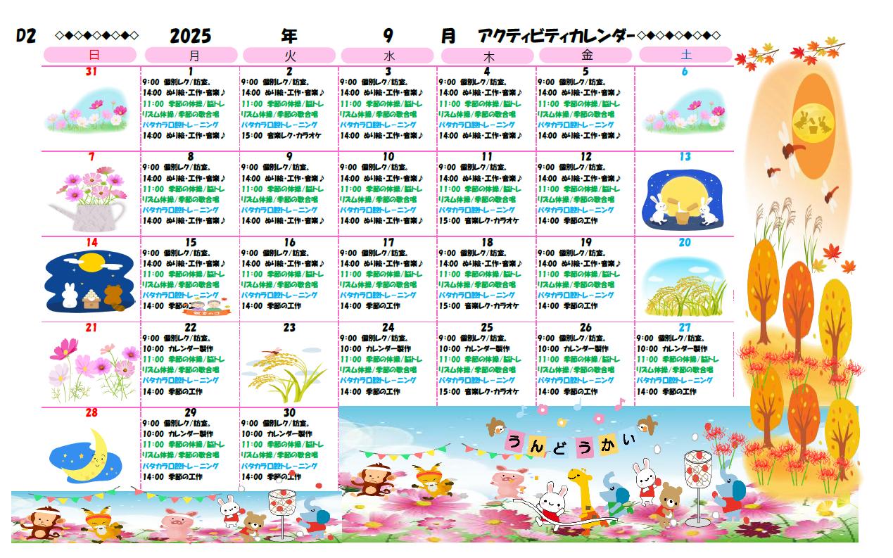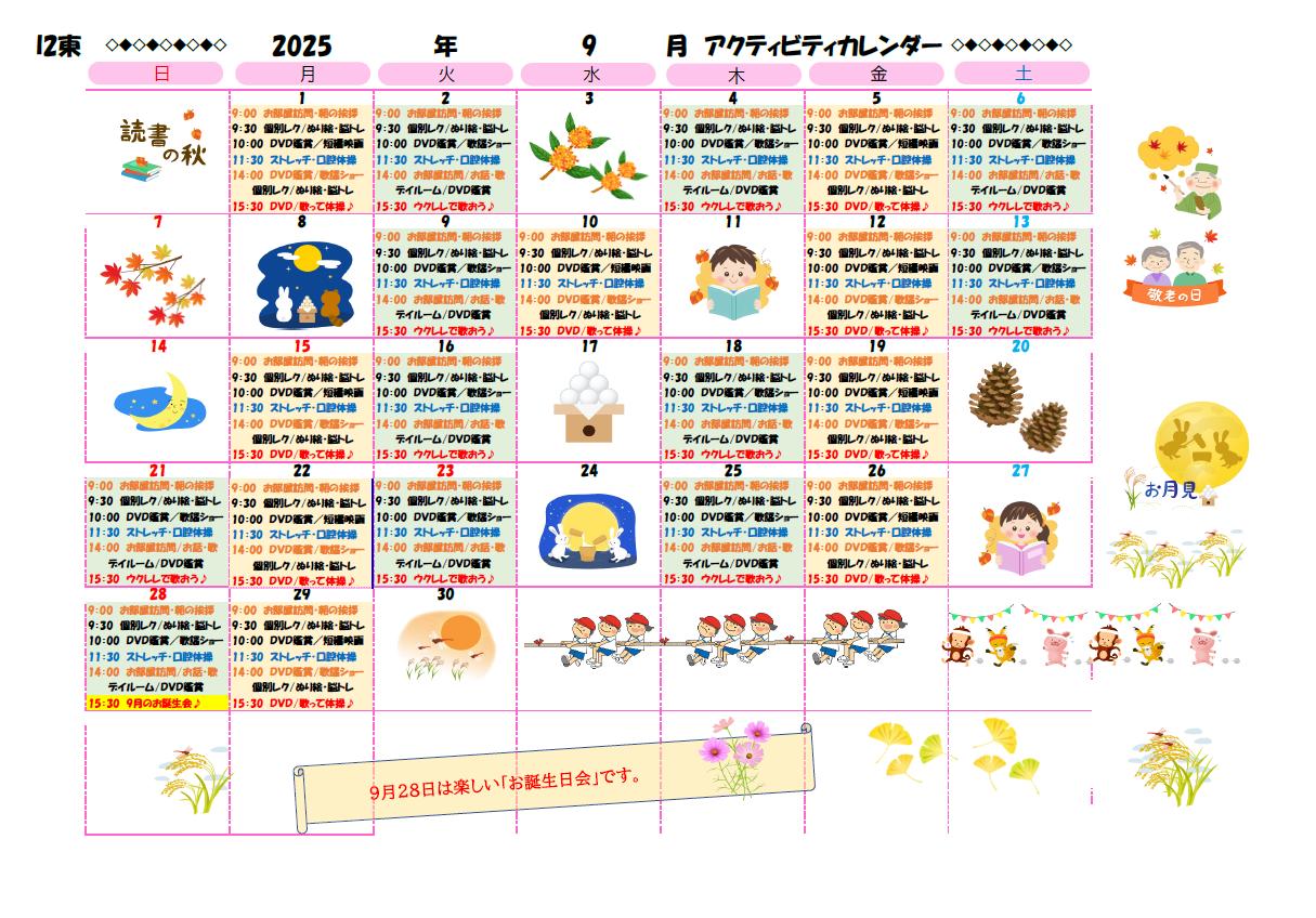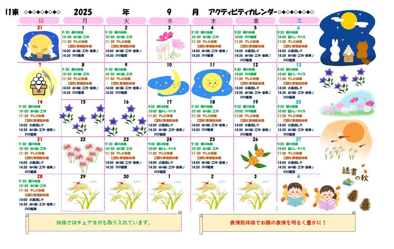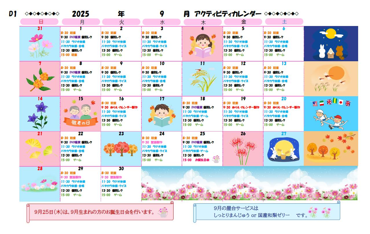アクティビティーカレンダー掲載のお知らせ(2025年9月)【京都東山老年サナトリウム】