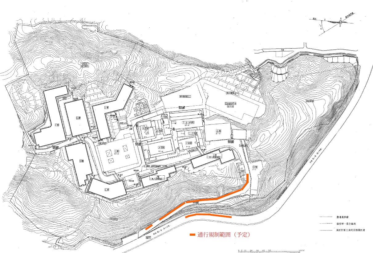 作業に伴い、敷地内道路の一部で片側通行規制を実施致します。