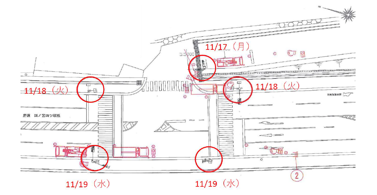 作業に伴い、信号機の停止及び三条通、敷地内道路で通行規制が行われます。