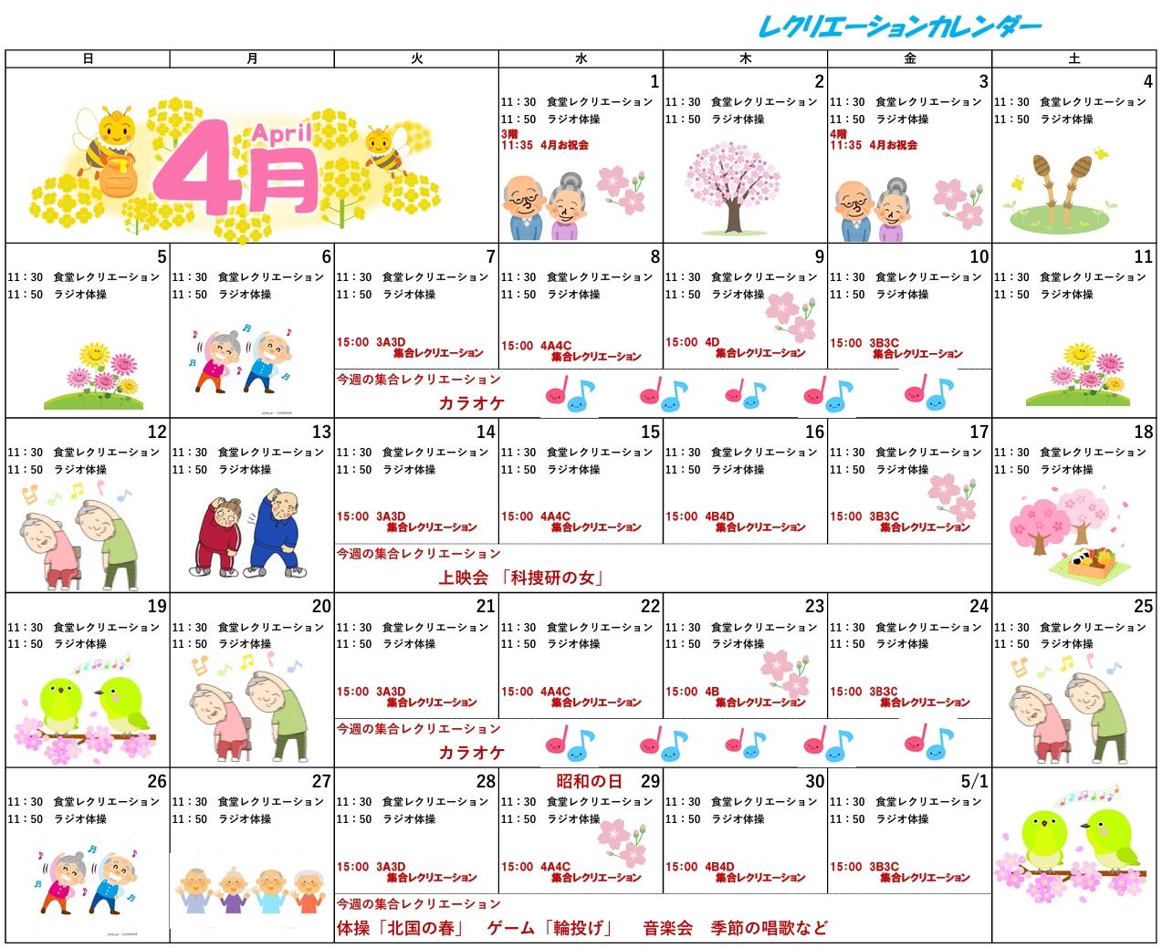 レクリエーションカレンダー掲載のお知らせ(2026年4月)【なごみの里病院介護医療院】