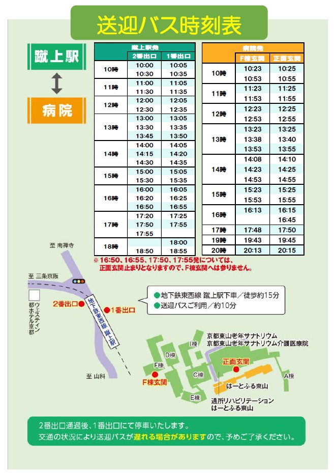 【運休対象送迎バス】 山科駅―京都東山老年サナトリウム 往復便(全11便)