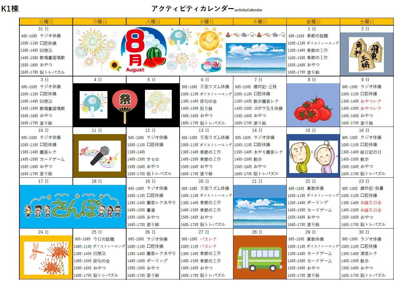アクティビティーカレンダー掲載のお知らせ(2025年8月)【はーとふる東山】