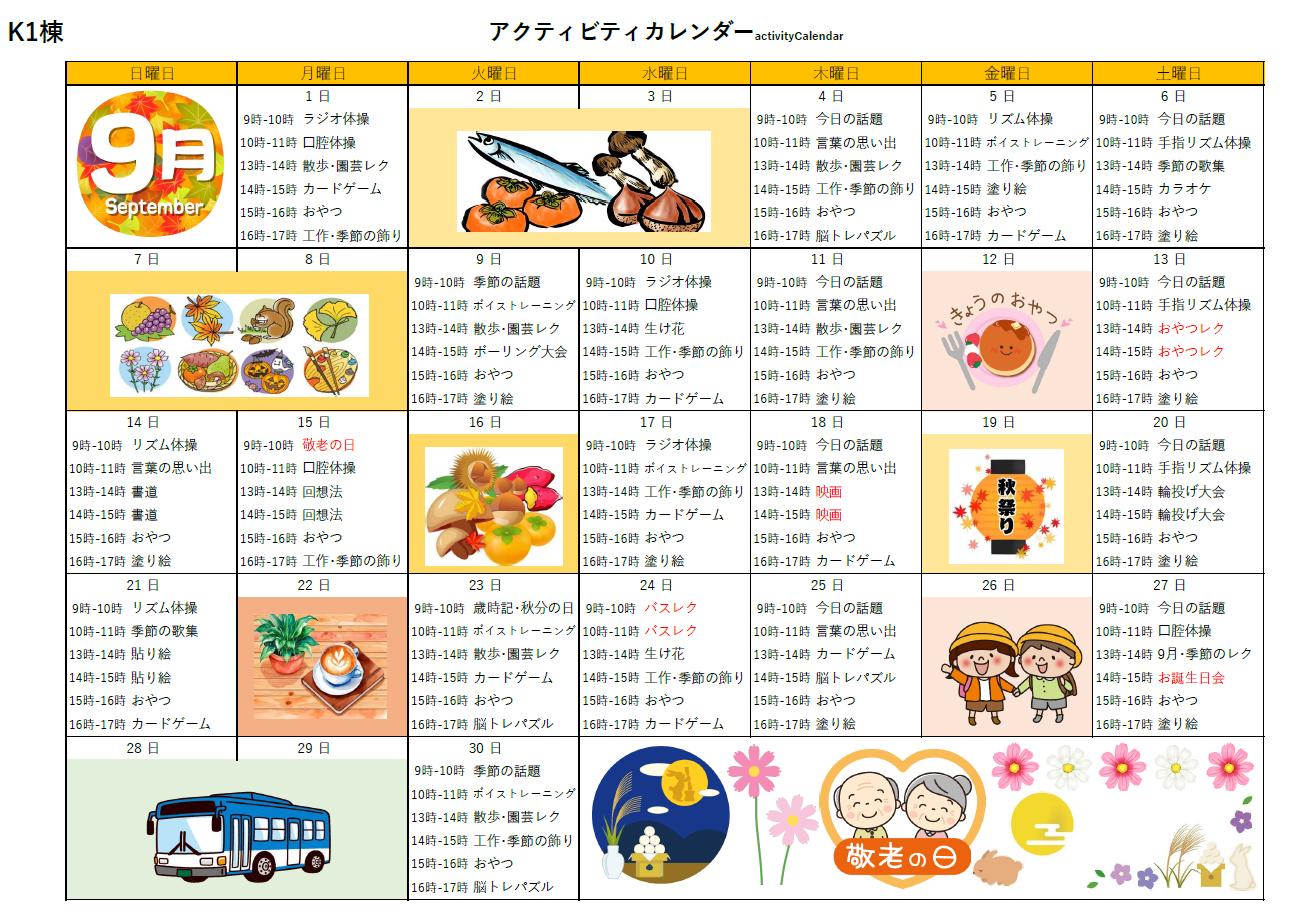 アクティビティーカレンダー掲載のお知らせ(2025年9月)【はーとふる東山】