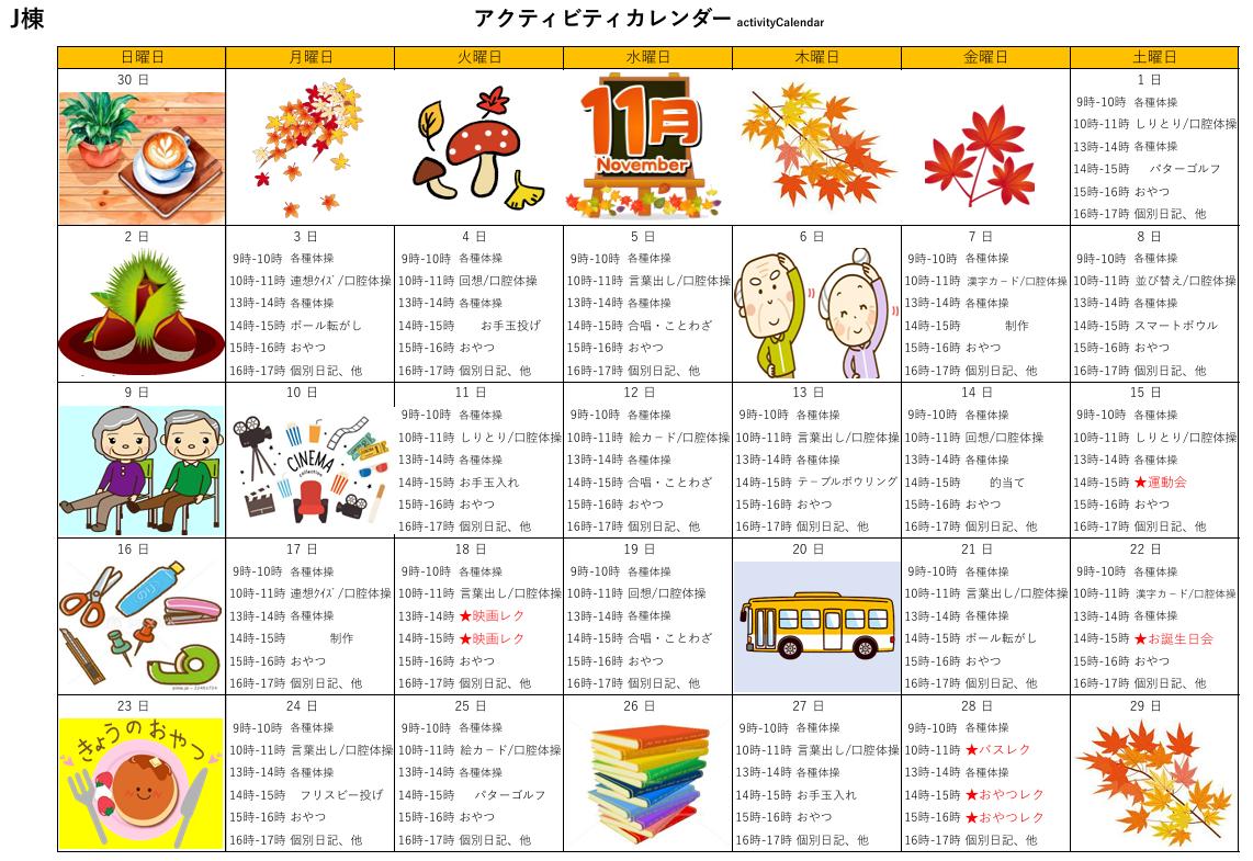 アクティビティーカレンダー掲載のお知らせ(2025年11月)【はーとふる東山】