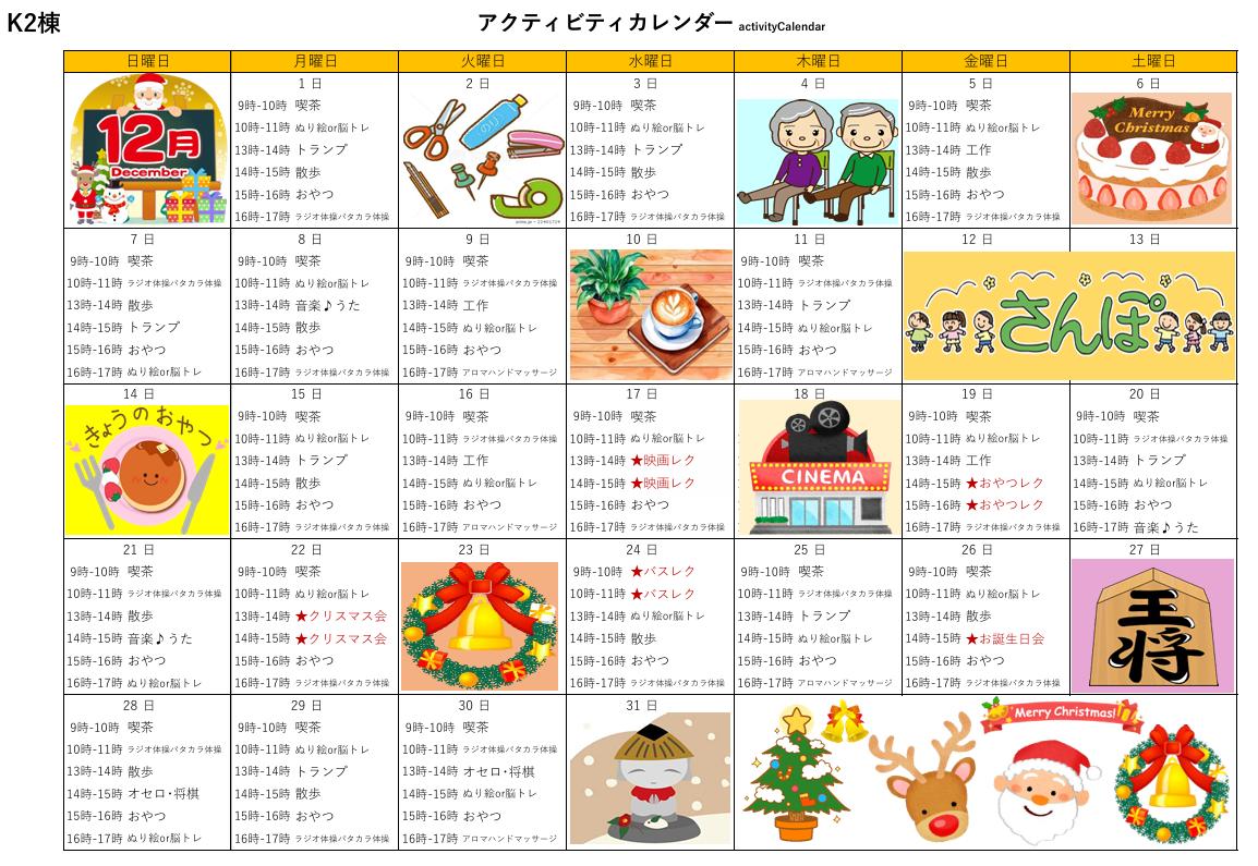 アクティビティーカレンダー掲載のお知らせ(2025年12月)【はーとふる東山】