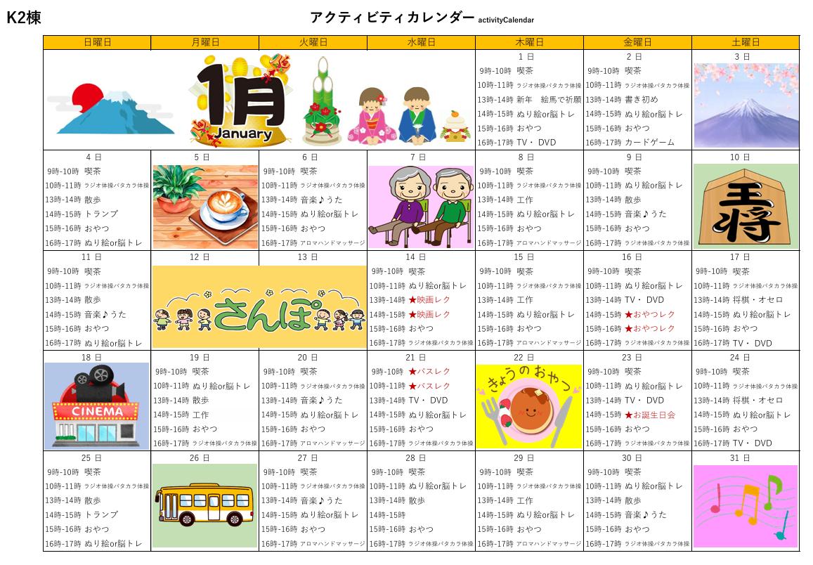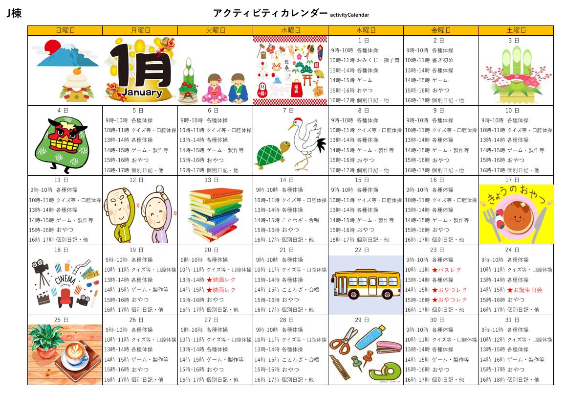 アクティビティーカレンダー掲載のお知らせ(2026年1月)【はーとふる東山】