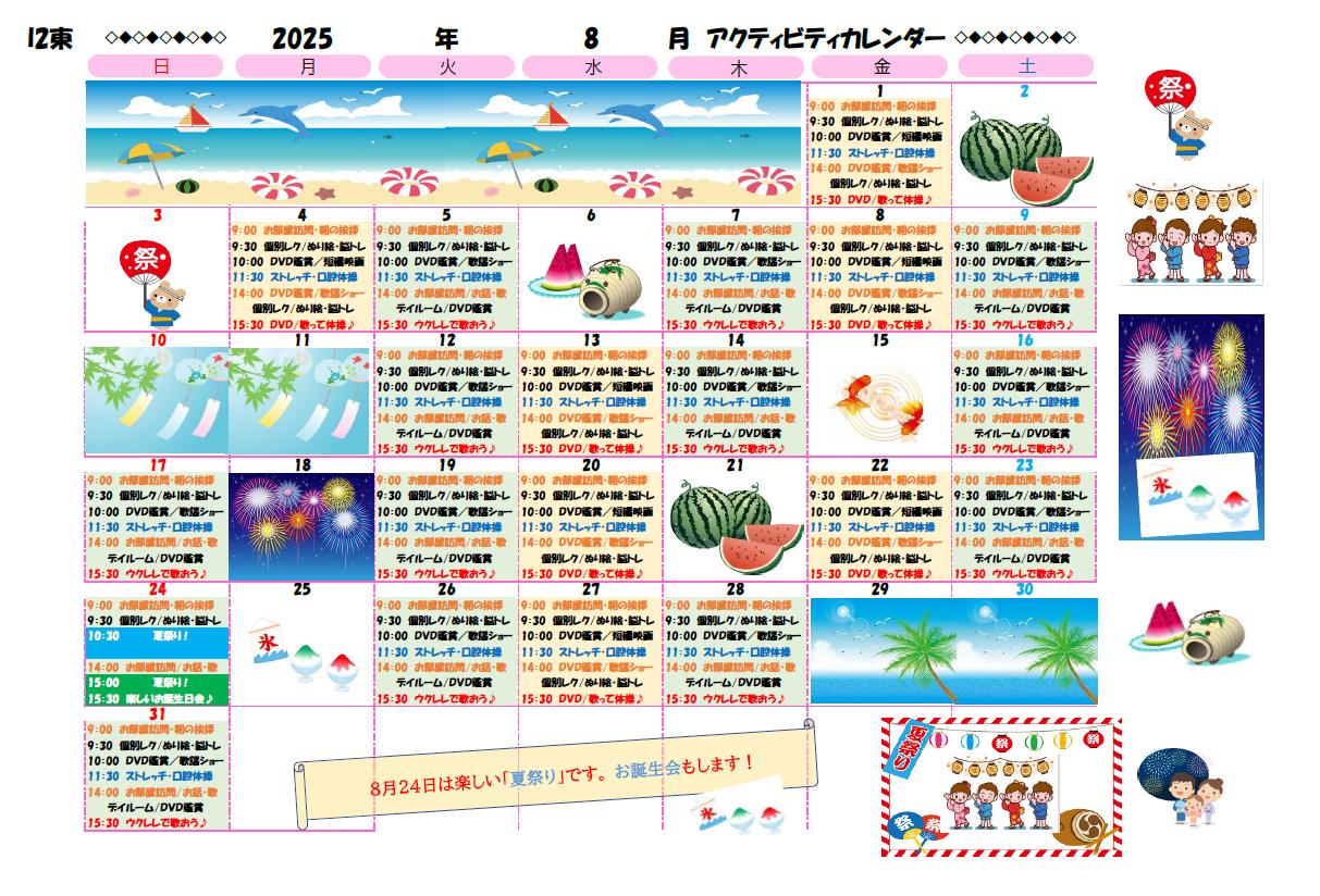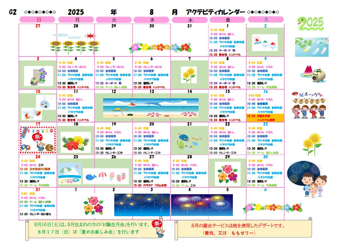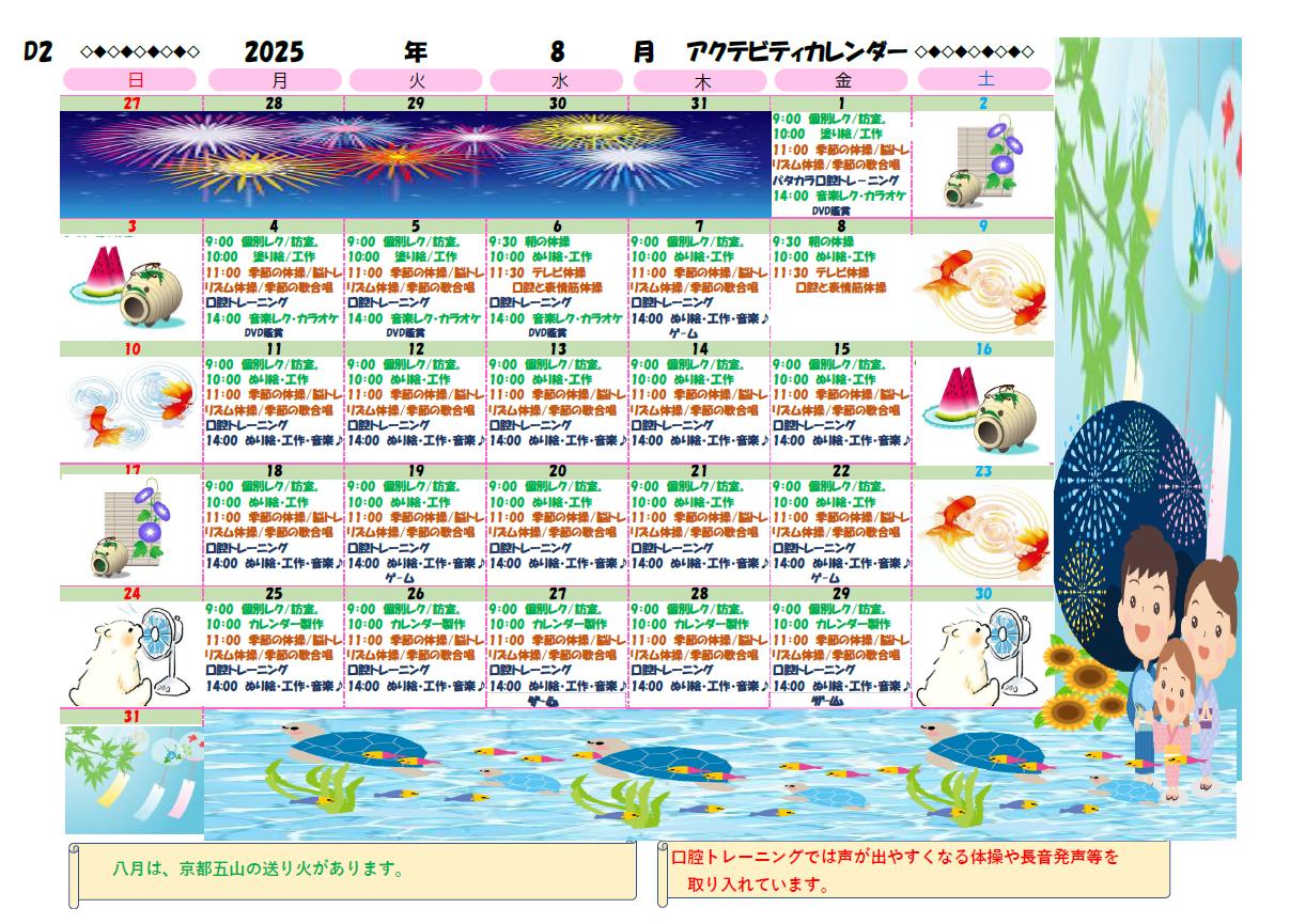 アクティビティーカレンダー掲載のお知らせ(2025年8月)【京都東山老年サナトリウム】