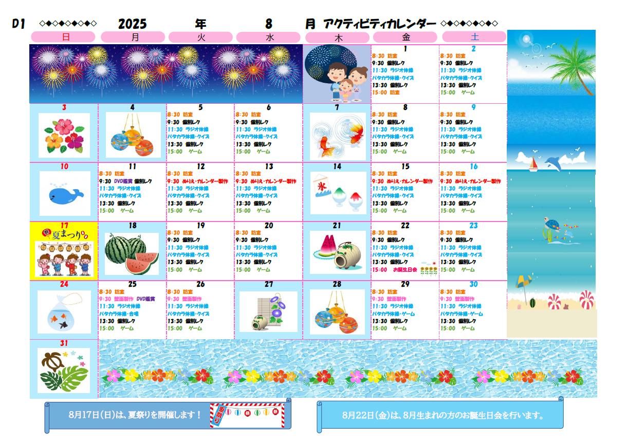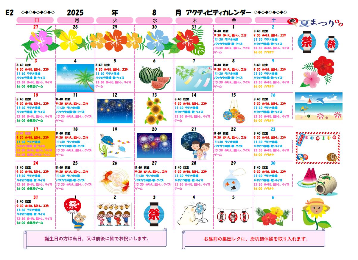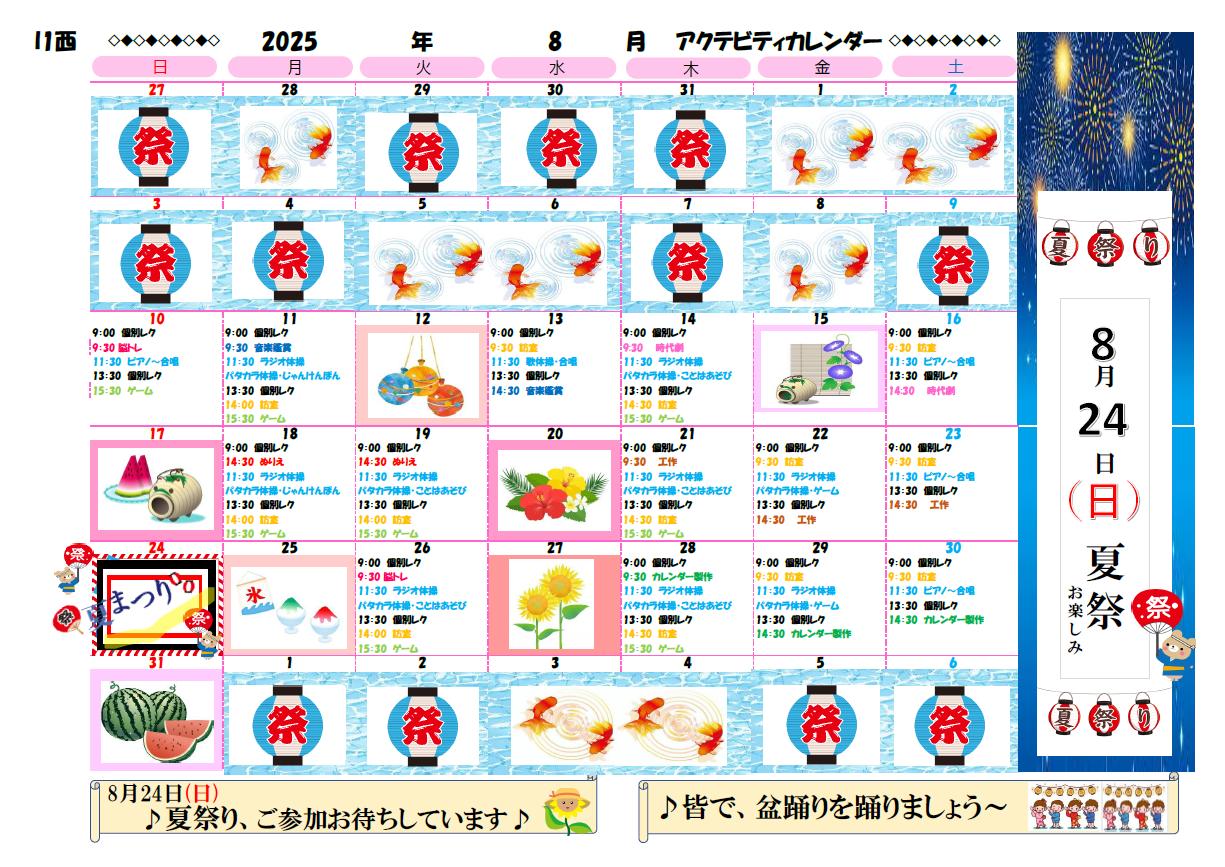 アクティビティーカレンダー掲載のお知らせ(2025年8月)【京都東山老年サナトリウム】
