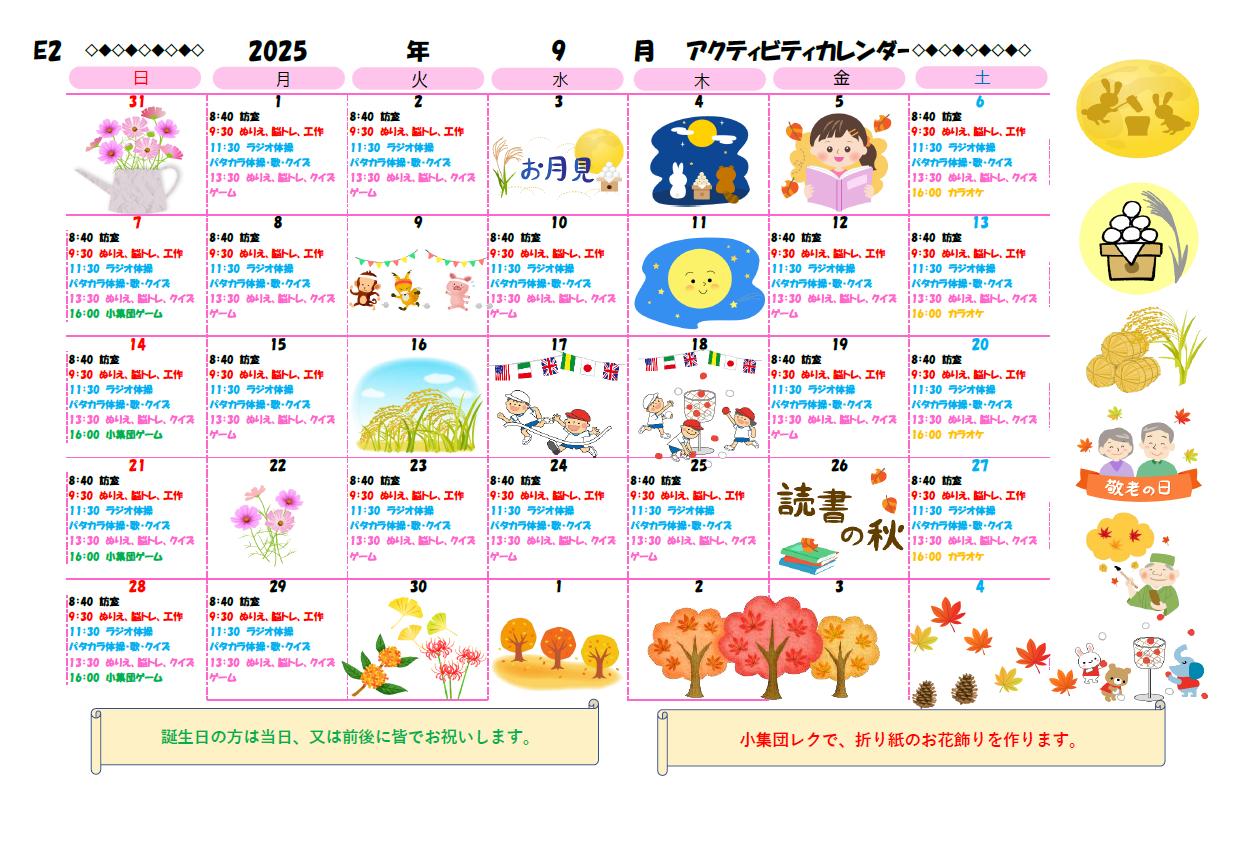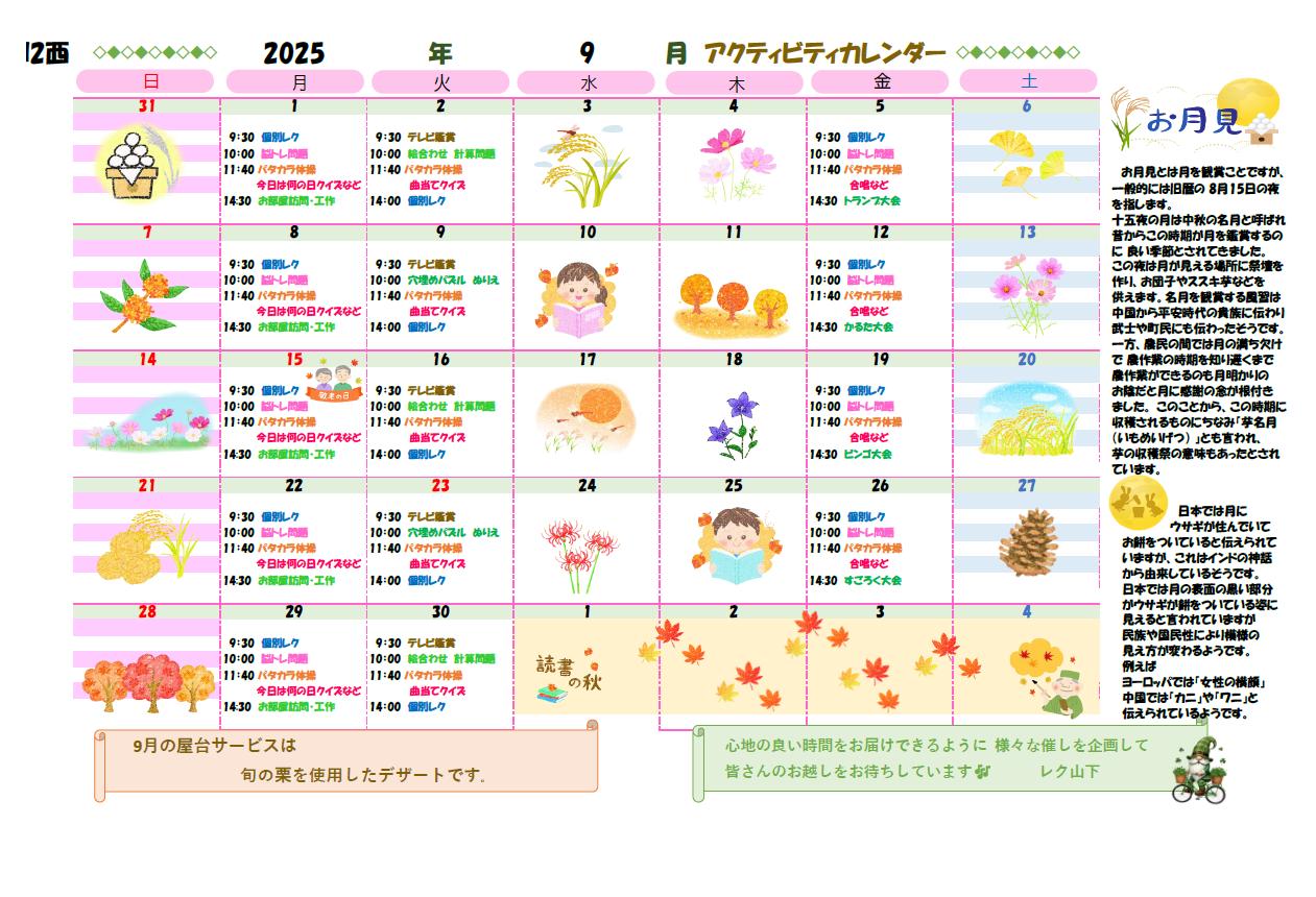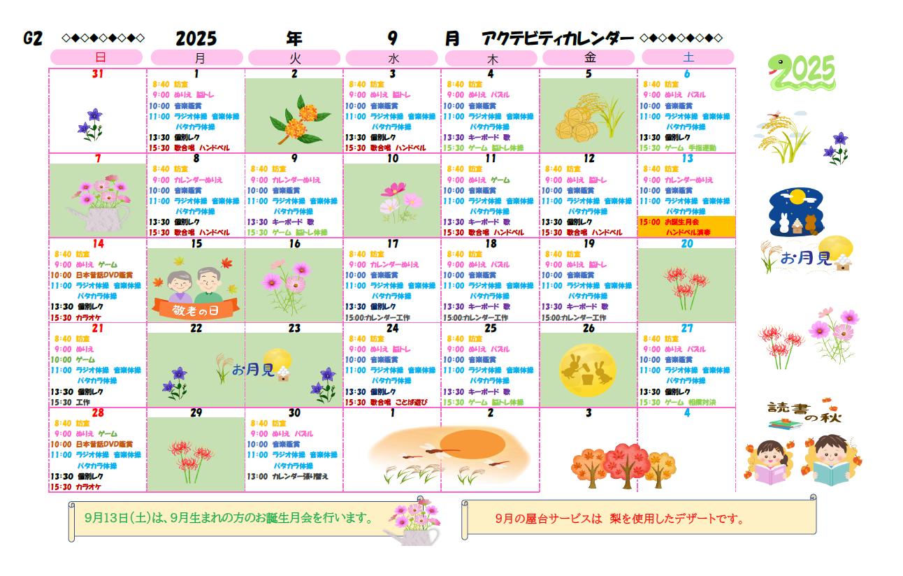 アクティビティーカレンダー掲載のお知らせ(2025年9月)【京都東山老年サナトリウム】