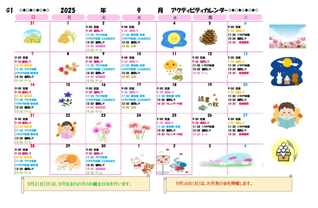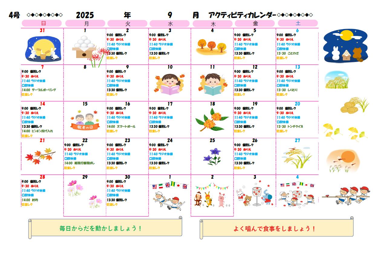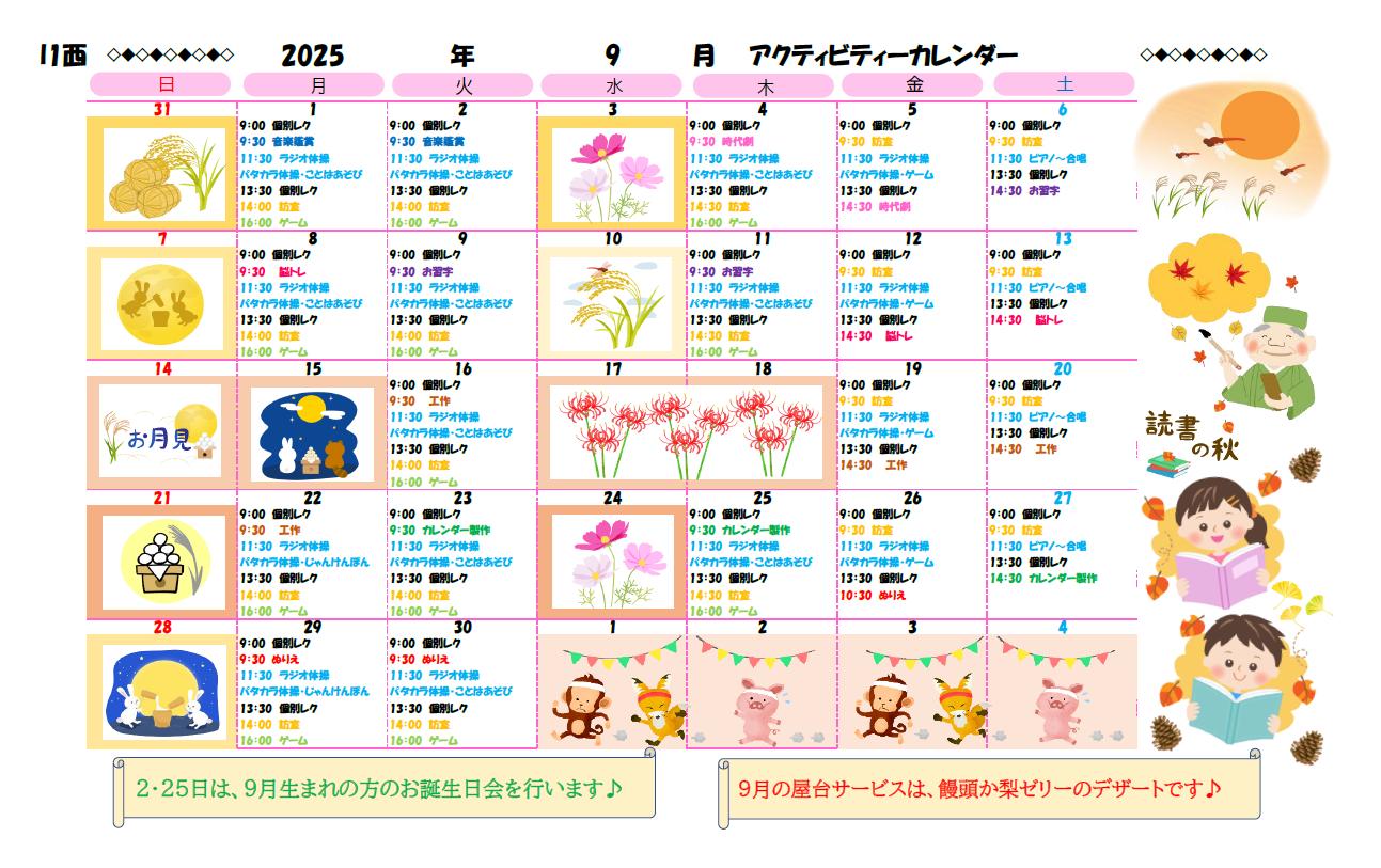 アクティビティーカレンダー掲載のお知らせ(2025年9月)【京都東山老年サナトリウム】