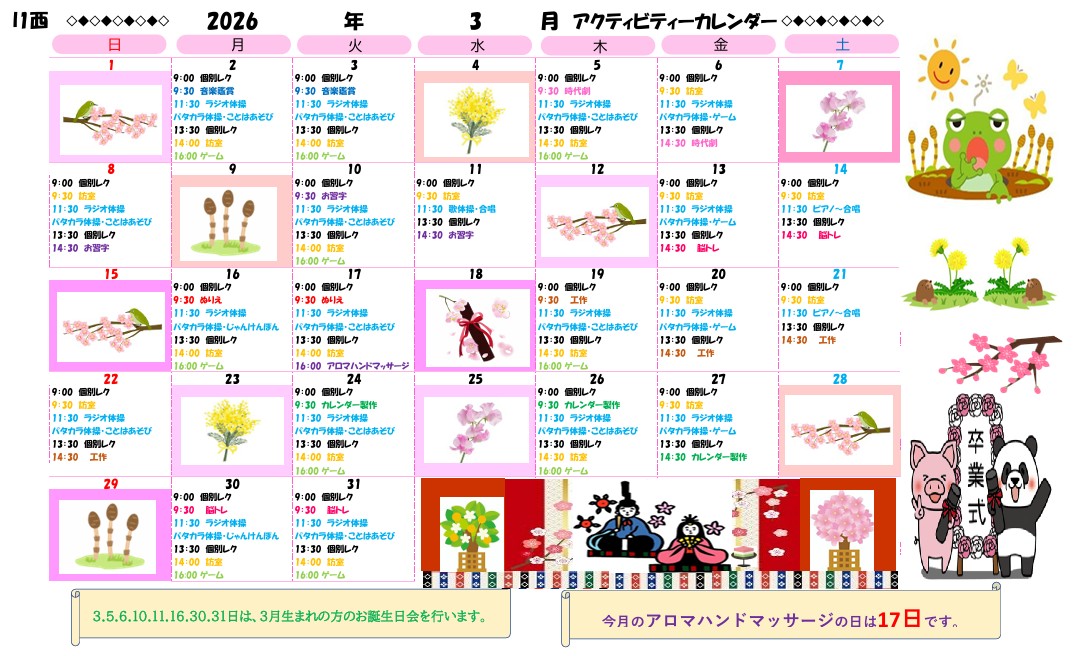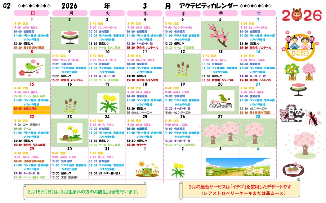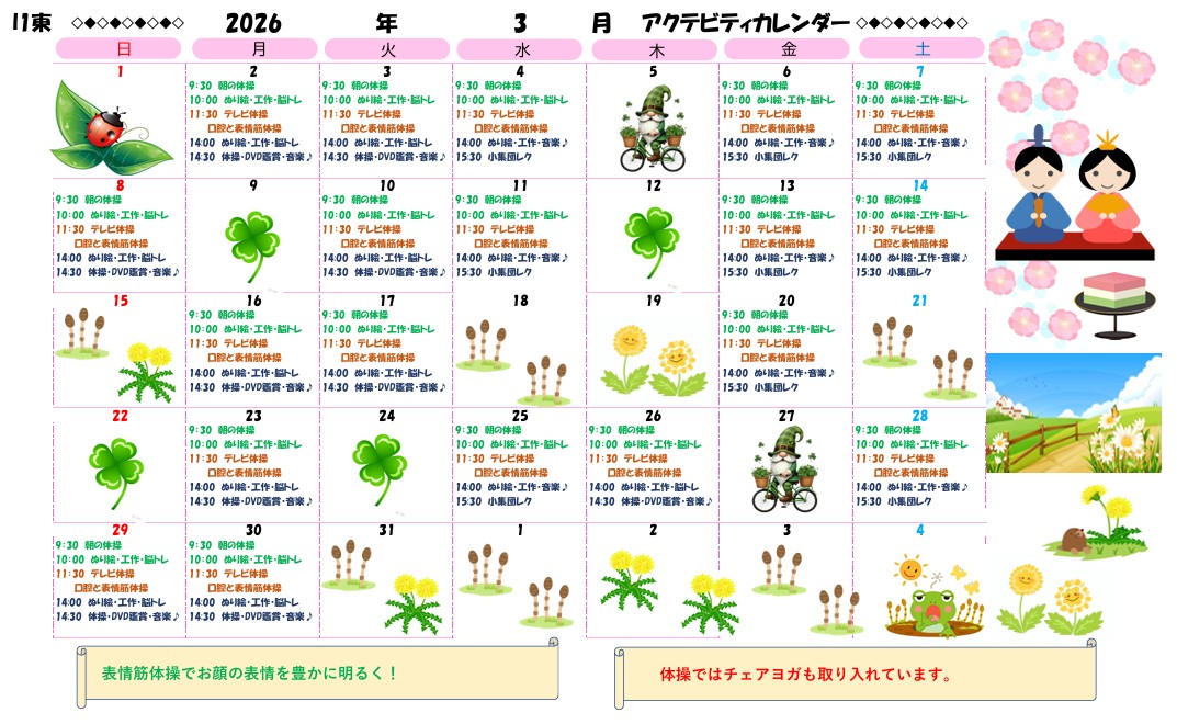 アクティビティーカレンダー掲載のお知らせ(2026年3月)【京都東山老年サナトリウム】